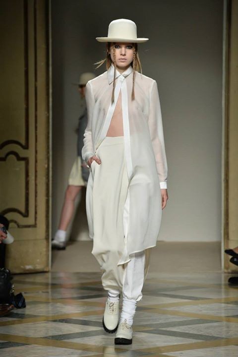 Sulle passerelle autunno-inverno 2014-2015, diverse maison hanno proposto il bianco: Krizia, Blumarine e Ralph Lauren, Versace, Marni, Sergei Grinko, DSquared2, Calvin Klein, Costume National, Jil Sander, Hermès, Ports 1961, Roberto Cavalli, Blugirl, Genny, Laura Biagiotti, Davide Grillo, Au Jour Le Jour.