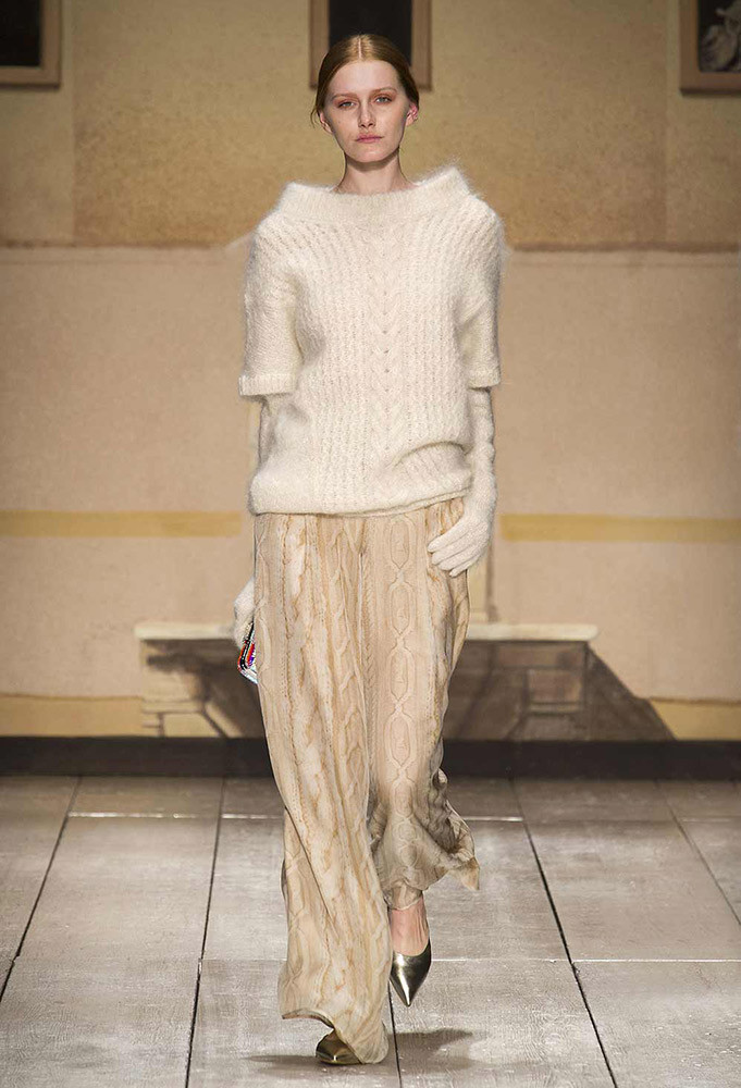Sua eccellenza il non colore domina le passarelle autunno-inverno 2014-2015, quel lieve suo candor è perfettamente in linea con i mesi freddi, preferibile se il look è total white. Già, perché i dettami modaioli impongono il bianco da capo a piedi e l’allure glaciale si sintonizza molto bene con le previsioni meteo e l’arrivo di Ivan, il nome di turno assegnato al freddo polare.