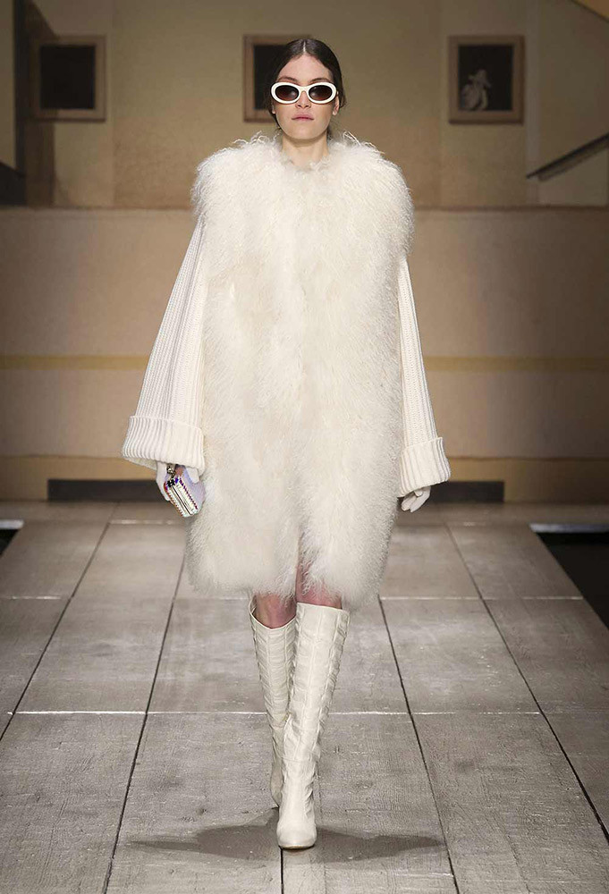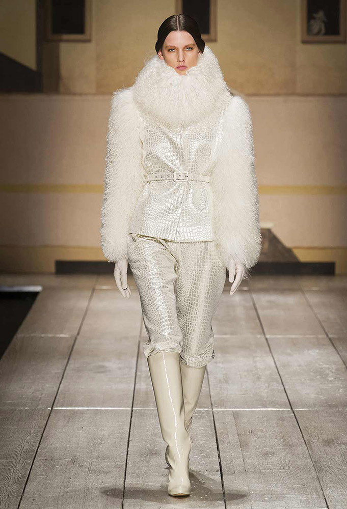Sono molto di moda questo inverno le voluminose pellicce a partire dalle proposte di Laura Biagiotti e Ralph Lauren, ma anche i cappotti lunghi e drappeggiati come nel caso di Marni. Non solo, il mood white non differisce e si plasma bene in ogni caso, che sia declinato su un tailleur con accessori en pendant, come per esempio DSquared2, o su un outfit cutting edge come quello da urban girl proposto da Sergei Grinko.