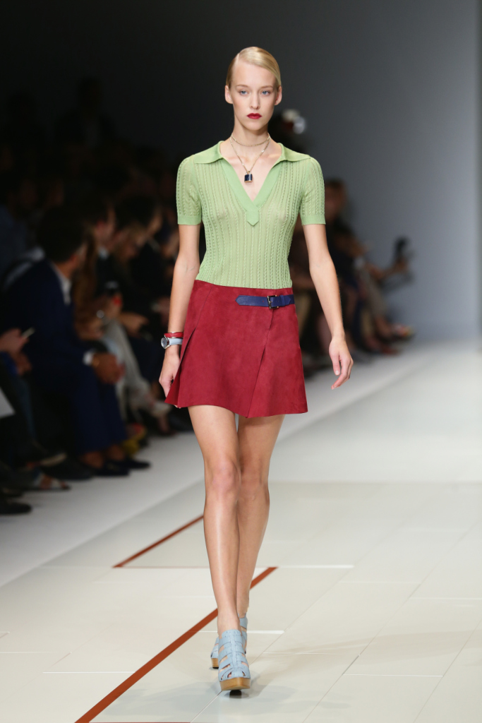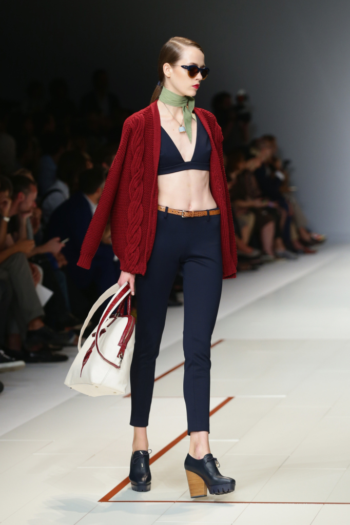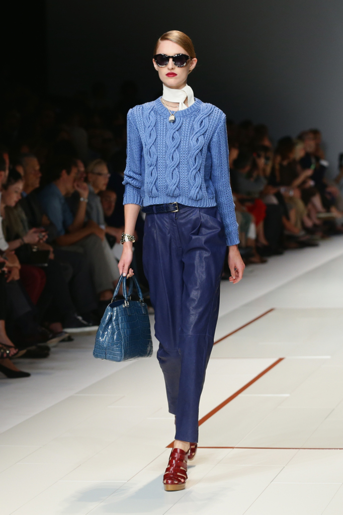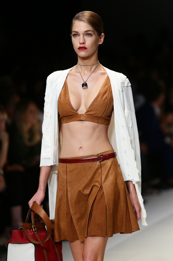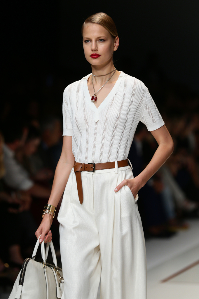 Trussardi presenta la sua nuova collezione primavera estate 2015 alla Milano Fashion Week, e non tradisce i suoi estimatori. Una collezione, che sin dal primo impatto, si presenta in pieno stile Trussardi: easy ed elegante, senza osare troppo. La parola d’ordine quest’anno è atletismo, con abiti scolpiti intorno ai corpi delle modelle, e la capacità di Gaia Trussardi di creare un ideale olimpico, per una donna che guarda allo sport, ma anche al lusso. Sofisticata, dinamica e sportiva, la donna Trussardi è la custode di un’eleganza senza tempo. Una collezione, quella di quest’anno, che racchiude ancora una volta i tratti distintivi del brand Trussardi: classe, voglia di sperimentare e modernità.