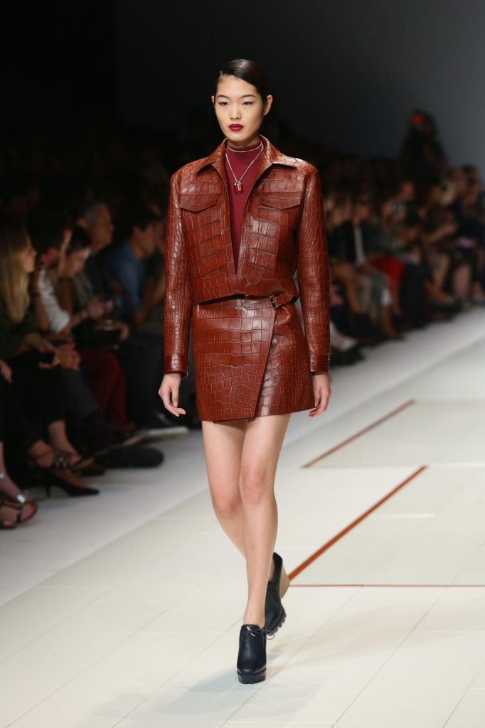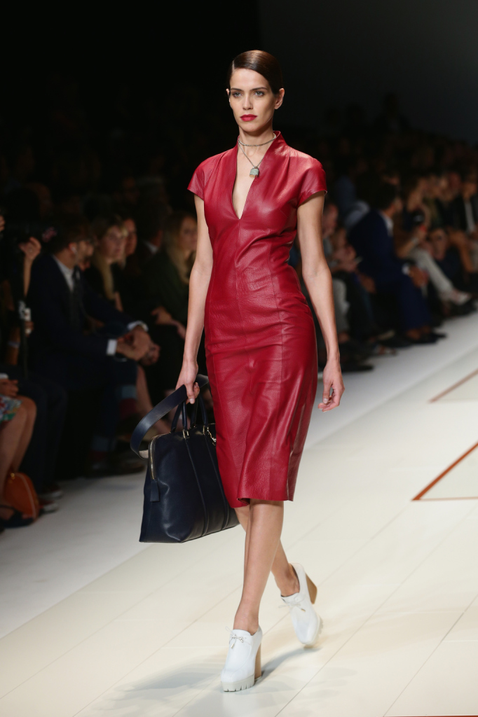 Sportiva e chic: è questa la donna di Trussardi per la primavera-estate 2015. Protagonista la pelle, declinata in tanti colori, e abiti scolpiti sulla silhouette