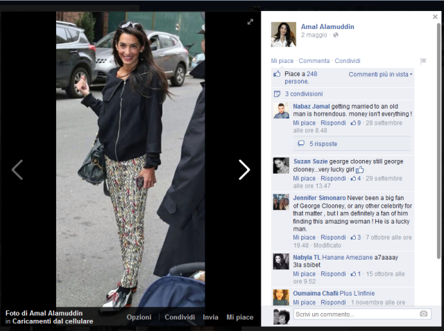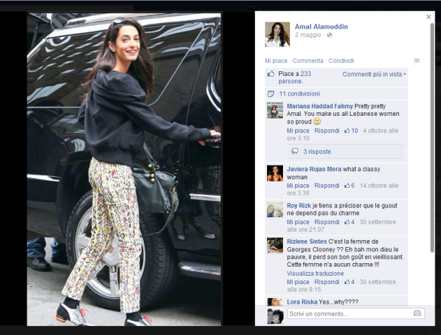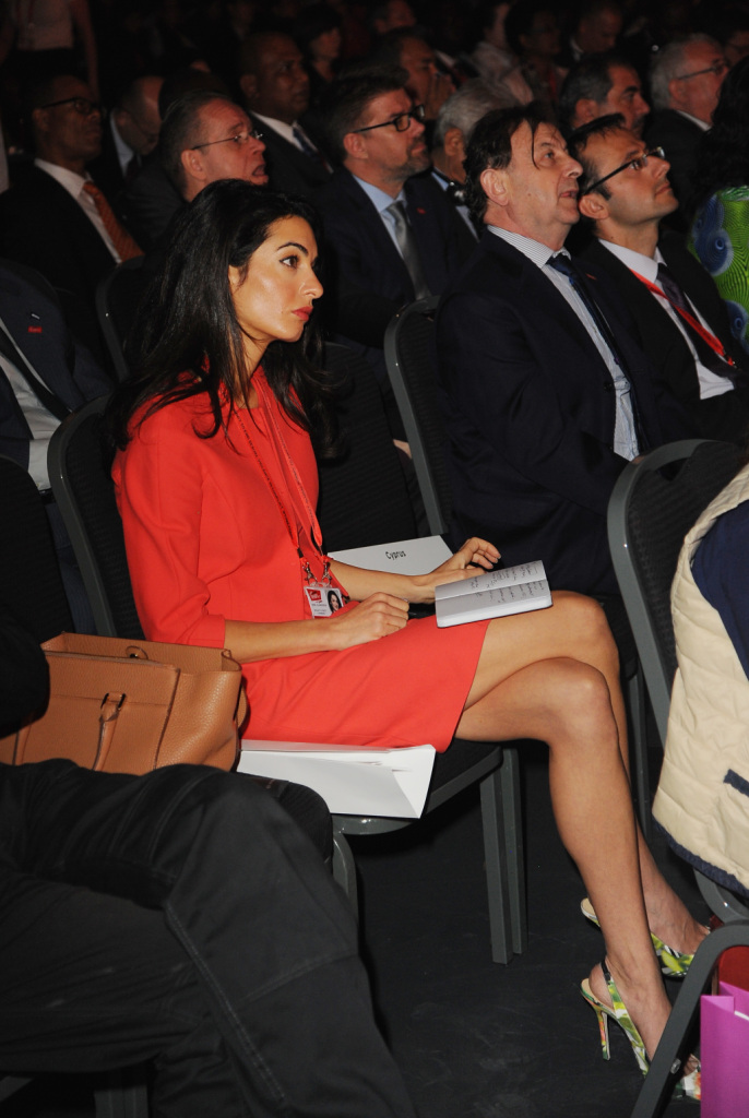 Amal Alamuddin, avvocato e moglie di George Clooney, ha un look che non passa inosservato.
