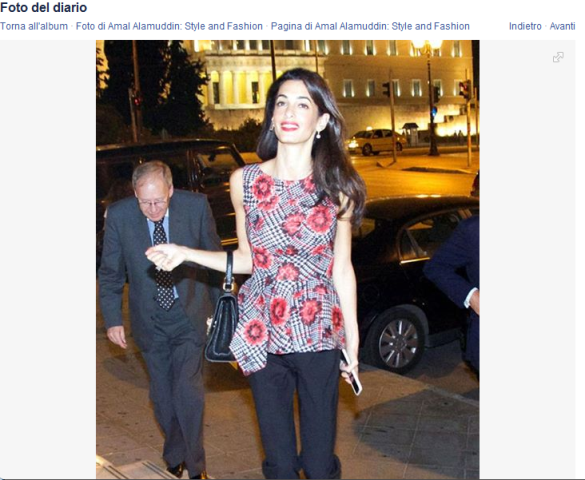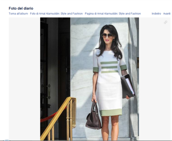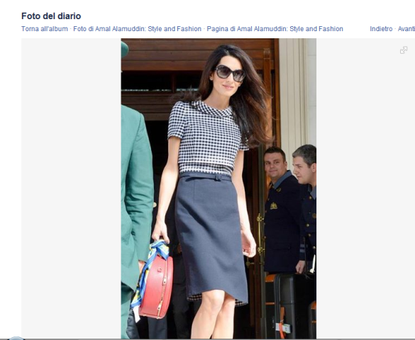 She loves bon ton. A sancirlo moltissimi outfit della moglie di George Clooney, donna invidiatissima e avvocato di grido: il soprabito nero, l’abito a trapezio anni ’60 e la maxi bag in pelle, tutto molto chic e un particolare degno di attirare l’attenzione, le scarpe bicolor, una diversa dall’altra; il tailleur semplice color corallo di Paule Ka abbinato a un paio di decolletè a fiori di Oscar de La Renta e quello con giacchina corta, pencil skirt e accessori neri a contrasto; il cappottino Balenciaga, motivo di pazzia tra molte americane (anche qui il particolare accessorio non manca: al mini dress nero, Amal abbina scarpe a tronchetto dal tacco scultura); gonna svolazzante e giacca bon ton.