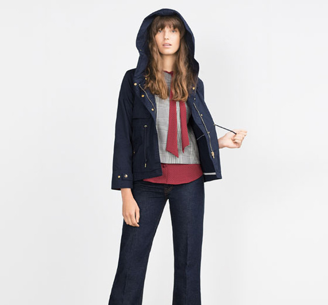 Altra interessante proposta è il parka corto in cotone e con cappuccio di Zara, perfetto da sfoggiare in ufficio e da abbinare con pantaloni slim, una morbida blusa e un cardigan dai colori pastello.