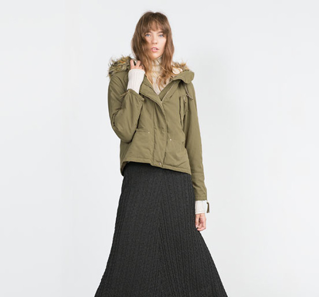Imperdibile per la sera è il modello lungo firmato Sisley: morbido e con cordino a delineare il punto vita e cappuccio; oppure un’altra bellissima proposta è il parka corto verde militare di Zara, da indossare insieme a una sensuale e femminile longuette nera, tronchetti in tono e un maxi pull bianco caldo e avvolgente.