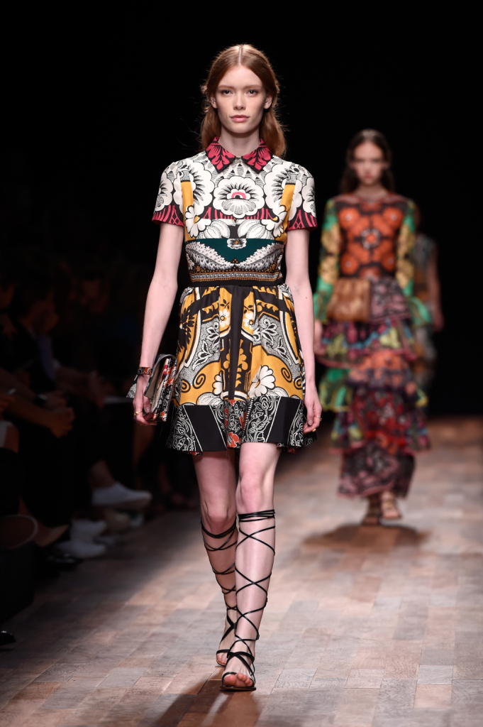 Per la collezione primavera-estate 2015, Valentino si ispira a un look da viaggiatrice nell'Italia del diciottesimo secolo, tra gusto neoclassico e profumi marini