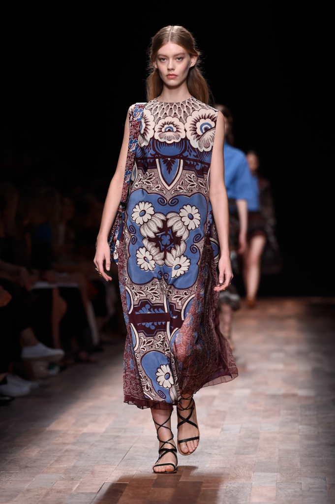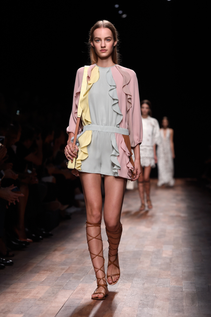 Per la collezione primavera-estate 2015, Valentino si ispira a un look da viaggiatrice nell’Italia del diciottesimo secolo, tra gusto neoclassico e profumi marini