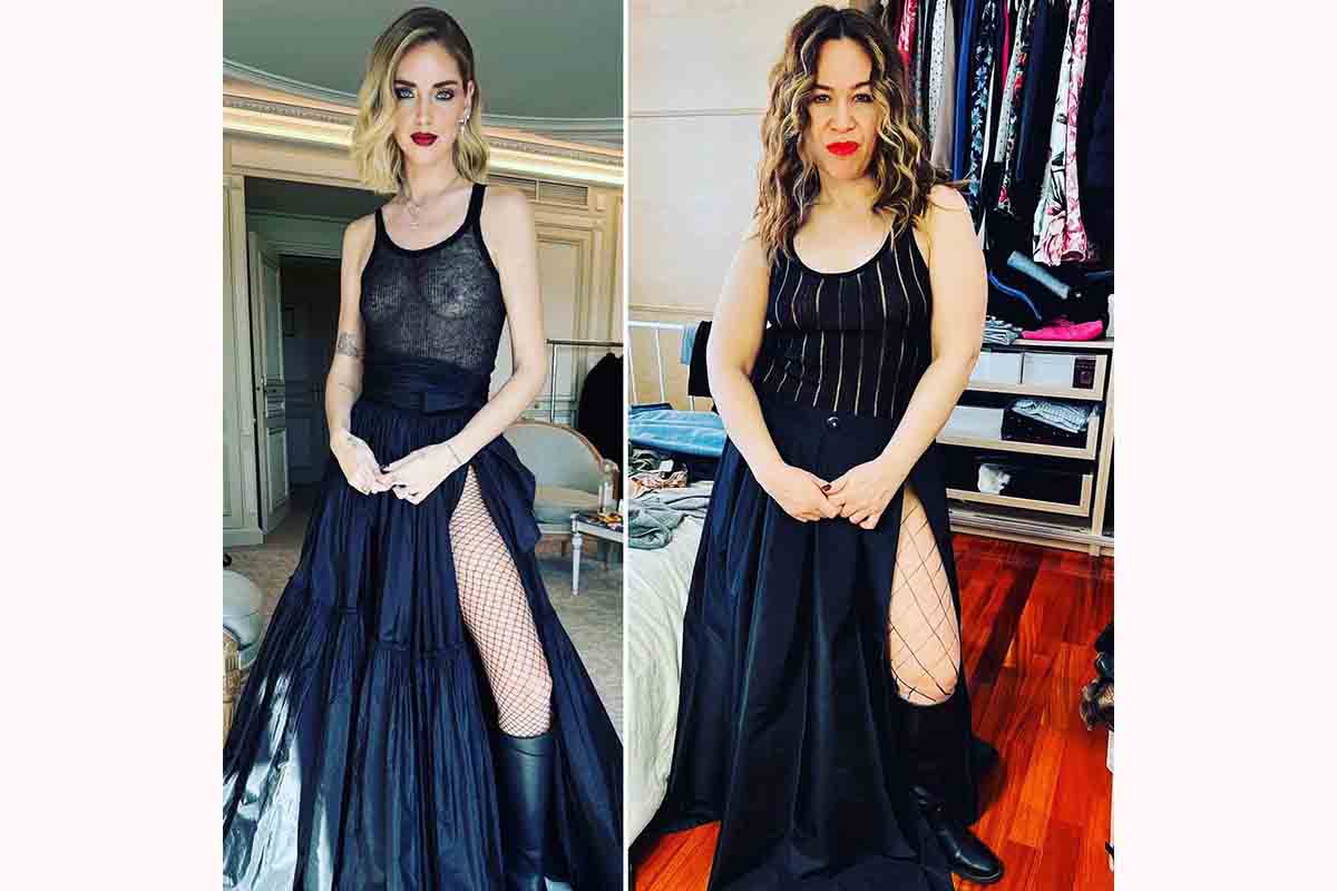 Peccato che il risultato non sia proprio bellissimo: il look è simile, ma l’effetto addosso è tremendo. Valeria Graci lo sa bene: in fondo, lo ha fatto apposta. Infatti, nel pubblicare la foto ci scherza su e scrive: “Quando ordini on line vs quando ti arriva a casa”. Poi aggiunge: “Vi vedo che allargate”. L’immagine pubblicata da Valeria Graci mette a confronto una foto di Chiara Ferragni e una sua. L’influencer indossa l’abito nero indossato in prima fila alla sfilata di Dior: una maxi gonna con lo spacco, calze a rete, stivali senza tacco e una canotta trasparente che lasciava vedere i capezzoli. L’attrice comica ha ricreato il look con una maxi gonna simile, una canotta un po’ meno trasparente, le calze a rete e gli stivali senza tacco. L’effetto è da ridere. Infatti, i fan si sono scatenati.