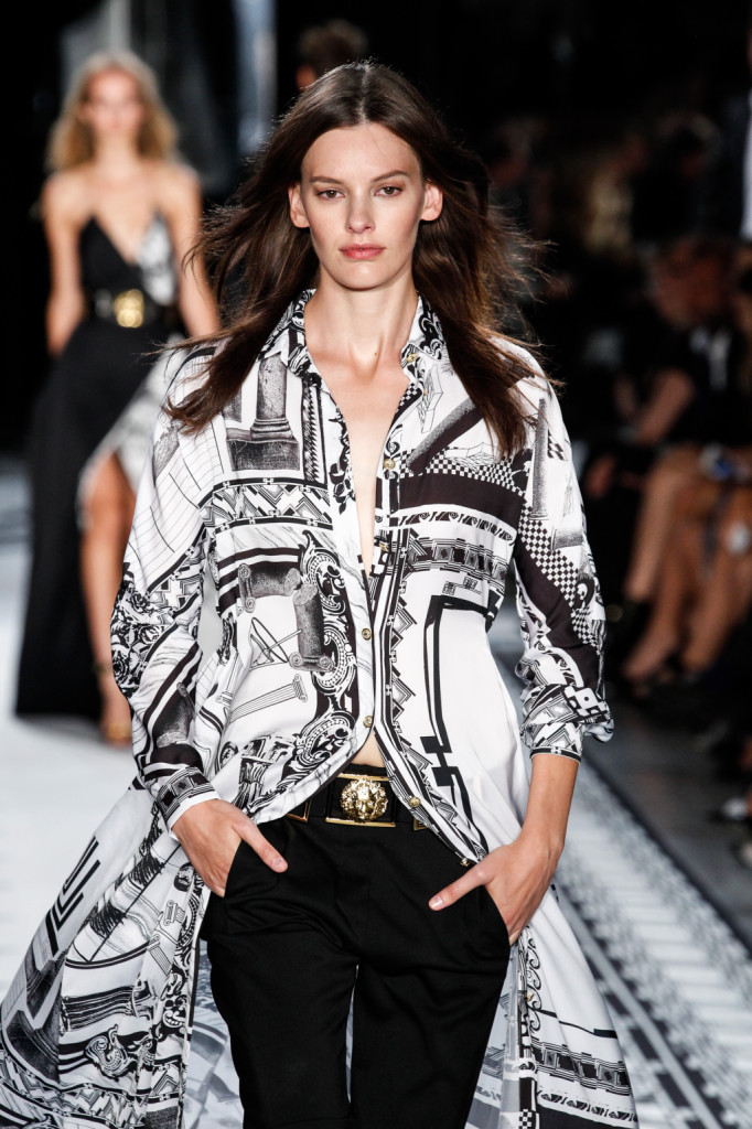 Pantaloni neri e ampia e lunga camicia con stampa / Versus Versace ss 2015