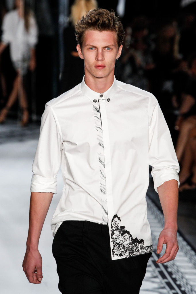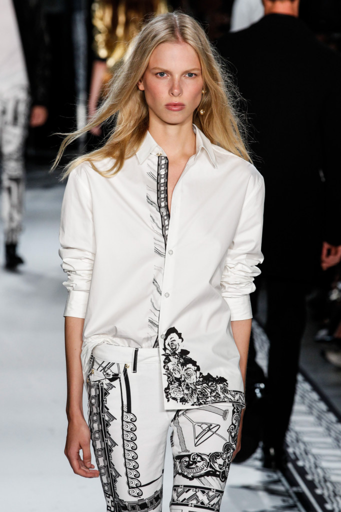 Pantaloni neri e camicia bianca con stampa sul bordo inferire / Versus Versace Men ss 2015