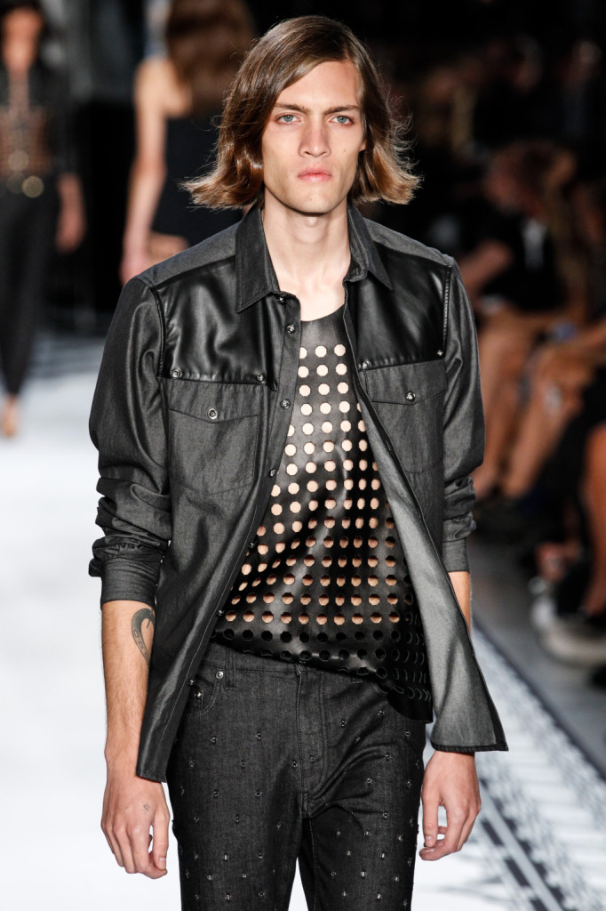 Pelle e trafori anche nelle maglie per lui / Versus Versace Men ss 2015