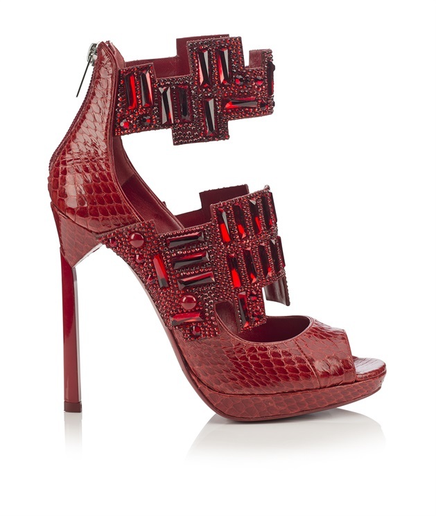 Dai sandali in pitone rosso coi cinturini ricoperti di pietre color rubino, alle décolleté blu con brillanti, nastri e fiocchi; dai sandali neri con una coda da pavone noir fino alle pietre che rimandano a giade e smeraldi dei sandali in pelle verde. Un passo dopo l’altro, Jimmy Choo ci porta a scoprire dei meravigliosi tesori. Nella collezione Vices, pensata per la linea Cruise 2015, la luce catturata dalle mille pietre illumina il mondo, colorandolo di bellezza e sensualità. Per camminare sul filo dell’eccesso, ma con estrema eleganza.
