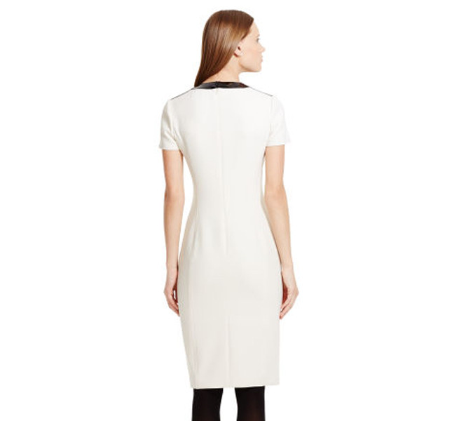 Altra magnifica ed elegante proposta è il tubino bianco candido con colletto nero firmato Ralph Lauren, da indossare insieme a calze coprenti nere: un outfit semplice e sofisticato al tempo stesso.