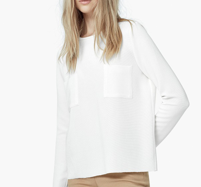 Oppure, se desideri aggiungere un tocco di colore, opta per la maglietta bianca con taschino laterale firmata Mango e indossala insieme a un pantalone skinny beige per un outfit candido ma allo stesso tempo d’impatto.