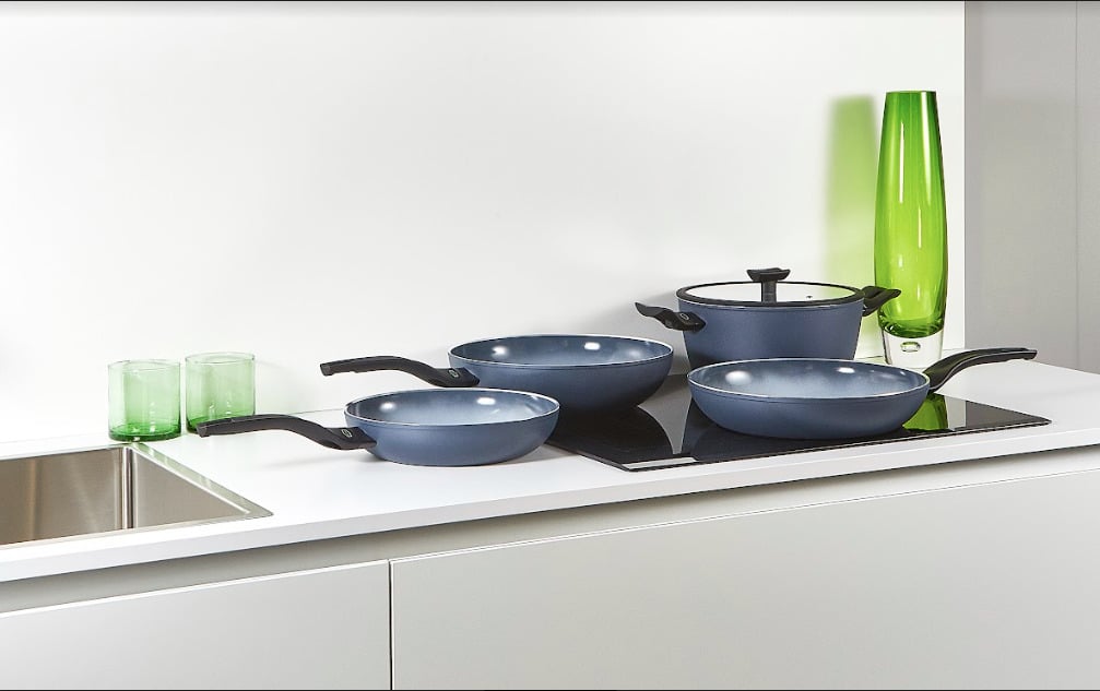 Aria Recycled è la nuova serie di Moneta, la scelta più naturale per chi predilige la salute a tavola grazie al rivestimento ceramico naturale FINEGRES®, costituito esclusivamente da materiali inorganici. Oggi si rinnova con il corpo in alluminio 100% riciclato. L’alluminio è un ottimo conduttore di calore, quindi, favorisce il risparmio di energia per una cucina sempre più sostenibile.