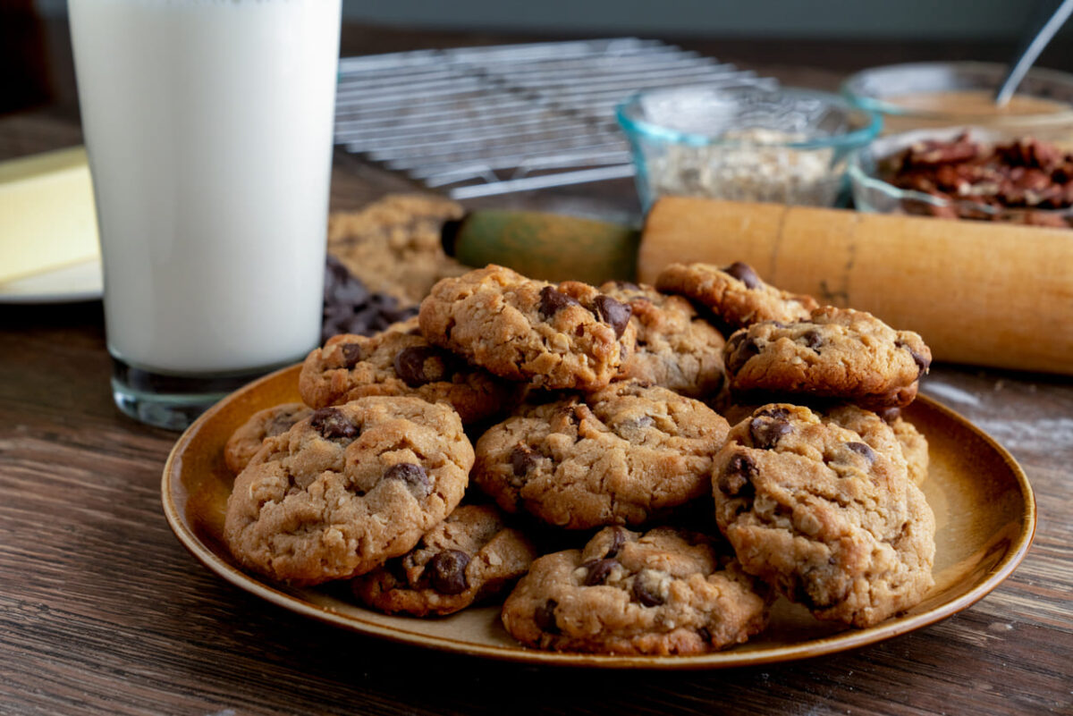 I cookies sono un’icona della cucina statunitense. Questo dolce americano, famoso in tutto il mondo, è ottimo sia per la colazione sia per un’energetica merenda. La ricetta dei biscotti tondi con gocce di cioccolato ha origine negli Anni ’30 nel Massachusetts. L’insegnante e dietologa Ruth Wakefield preparava deliziosi biscotti al burro da servire ai clienti del suo ‘Toll House Inn’, il lodge che conduceva col marito. Nel 1930, quasi per errore creò questi fantastici biscotti con pezzetti di cioccolato. Aveva terminato il cioccolato morbido e quindi decise di frantumare nell’impasto con una barretta di cioccolato semidolce donatale qualche tempo prima dall’amico Andrew Nestlé. Estraendo i biscotti dal forno, si accorse che i pezzetti di cioccolato non si erano sciolti, ma risultavano integri e ben visibili. Dal momento in cui li servì nel suo locale fu un trionfo e i biscotti divennero famosi in tutto il mondo.