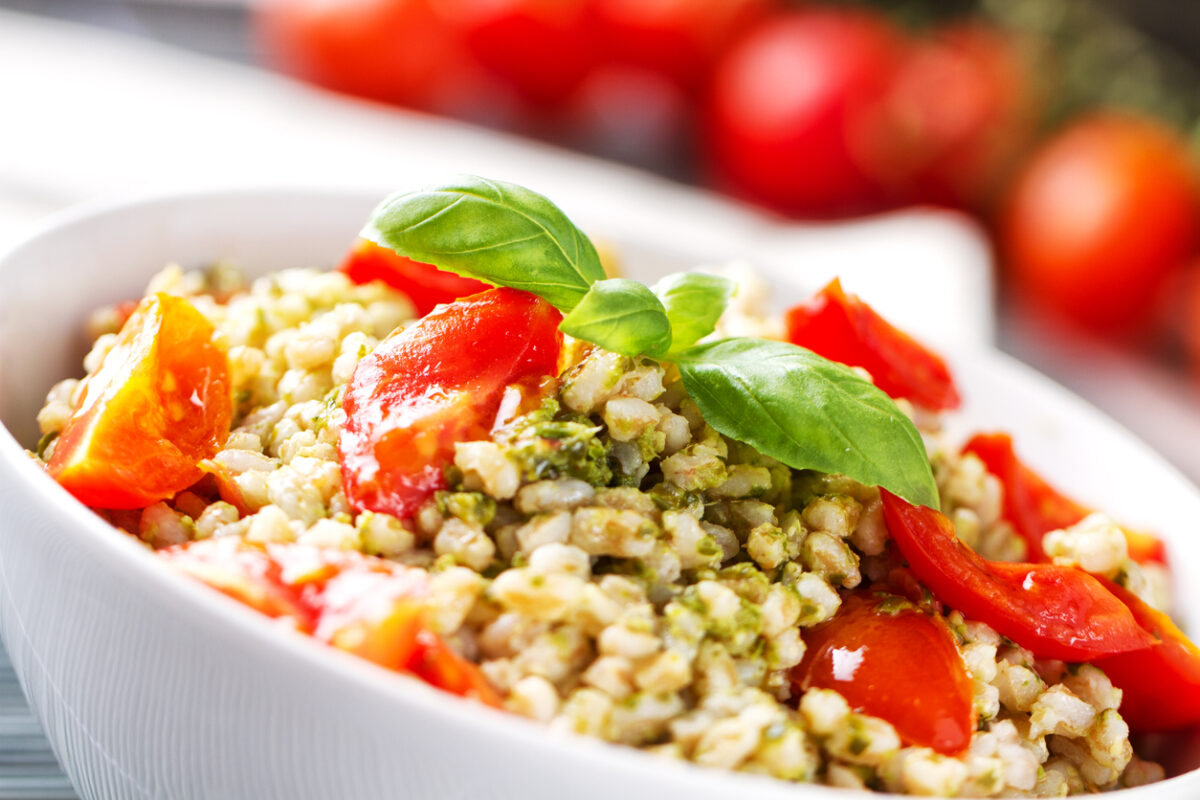 Il farro con pesto e pomodorini è un piatto veloce, light e gustoso