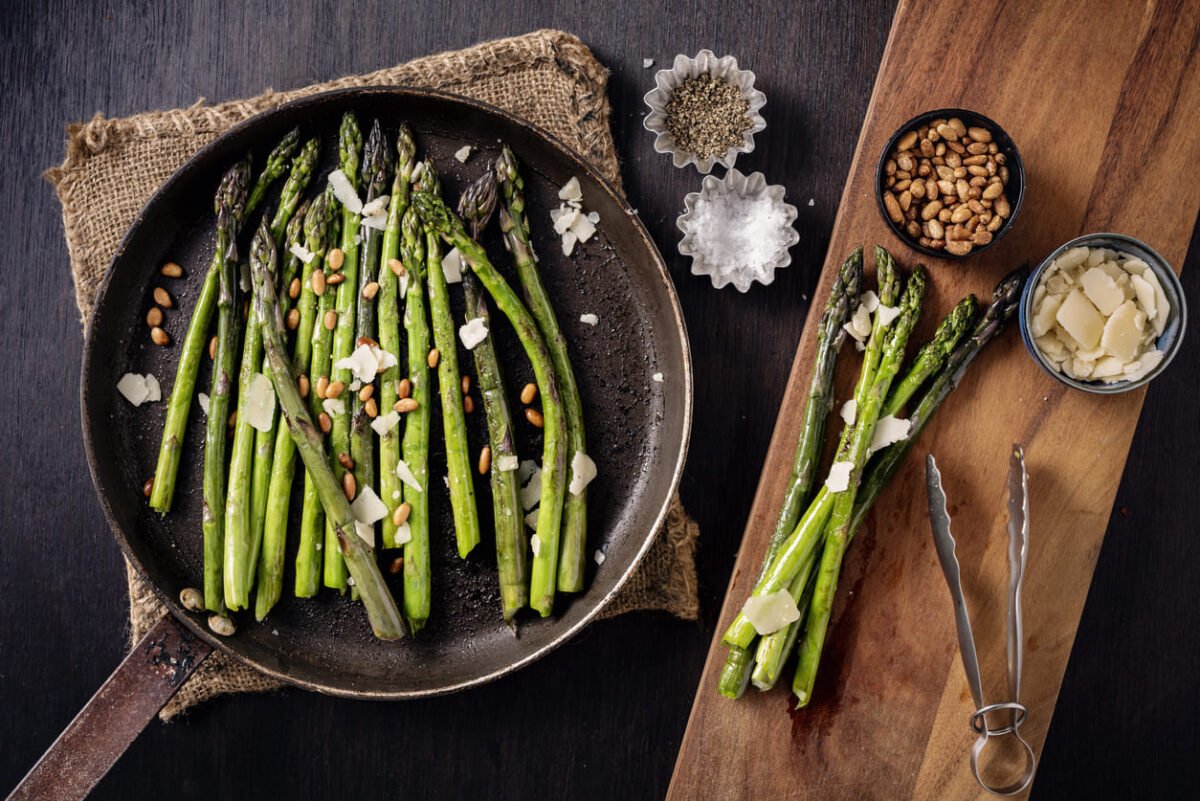 - In una padella, fate rosolare la cipolla tritata finemente con un filo d’olio. Aggiungete gli asparagi e fate cuocere per alcuni minuti finché saranno morbidi. Aggiustate di sale e pepe.