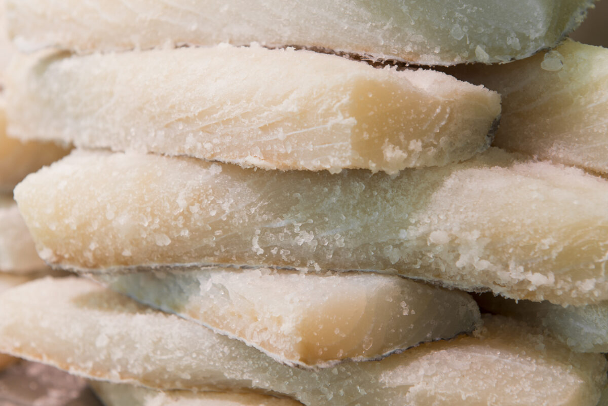 - Dopo aver preparato i due ingredienti principali della ricetta, eliminate la pelle e le spine del baccalà e lessate per circa 20 minuti, in una pentola di acqua bollente. Scolate i tranci di baccalà prima che inizino a sfaldarsi; potete anche cuocerli in forno, ma saranno meno morbidi e digeribili.