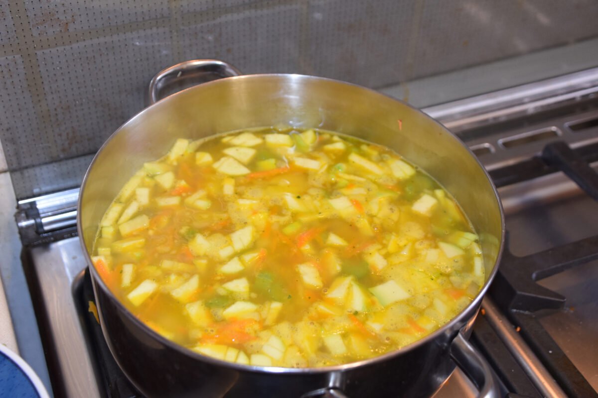 - Fate lessare le verdure finché non risultano ammorbidite. Potete anche farle andare con la pentola a pressione così risparmiate pure; se volete fare più in fretta potete tagliare in piccoli pezzi le verdure prima di lessarle, così nel giro di 20 minuti dovrebbero essere pronte.