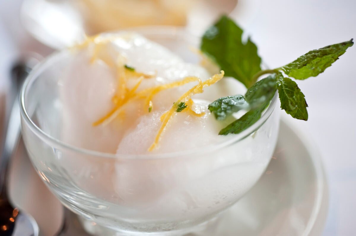 lemon sorbet ice cream with mint