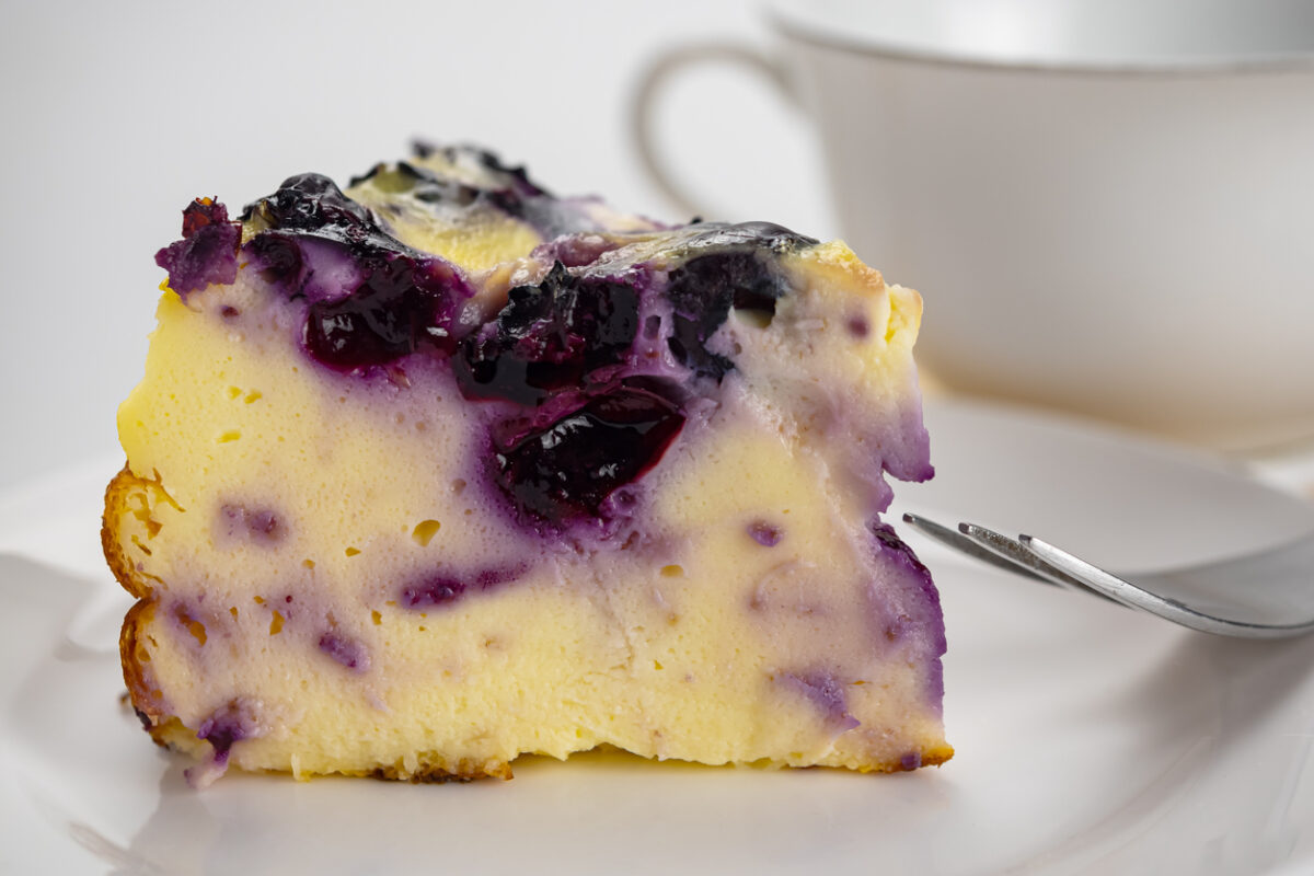 La torta con mirtilli freschi e yogurt è facile e velocissima da preparare, e in più ha poche calorie ma è golosissima