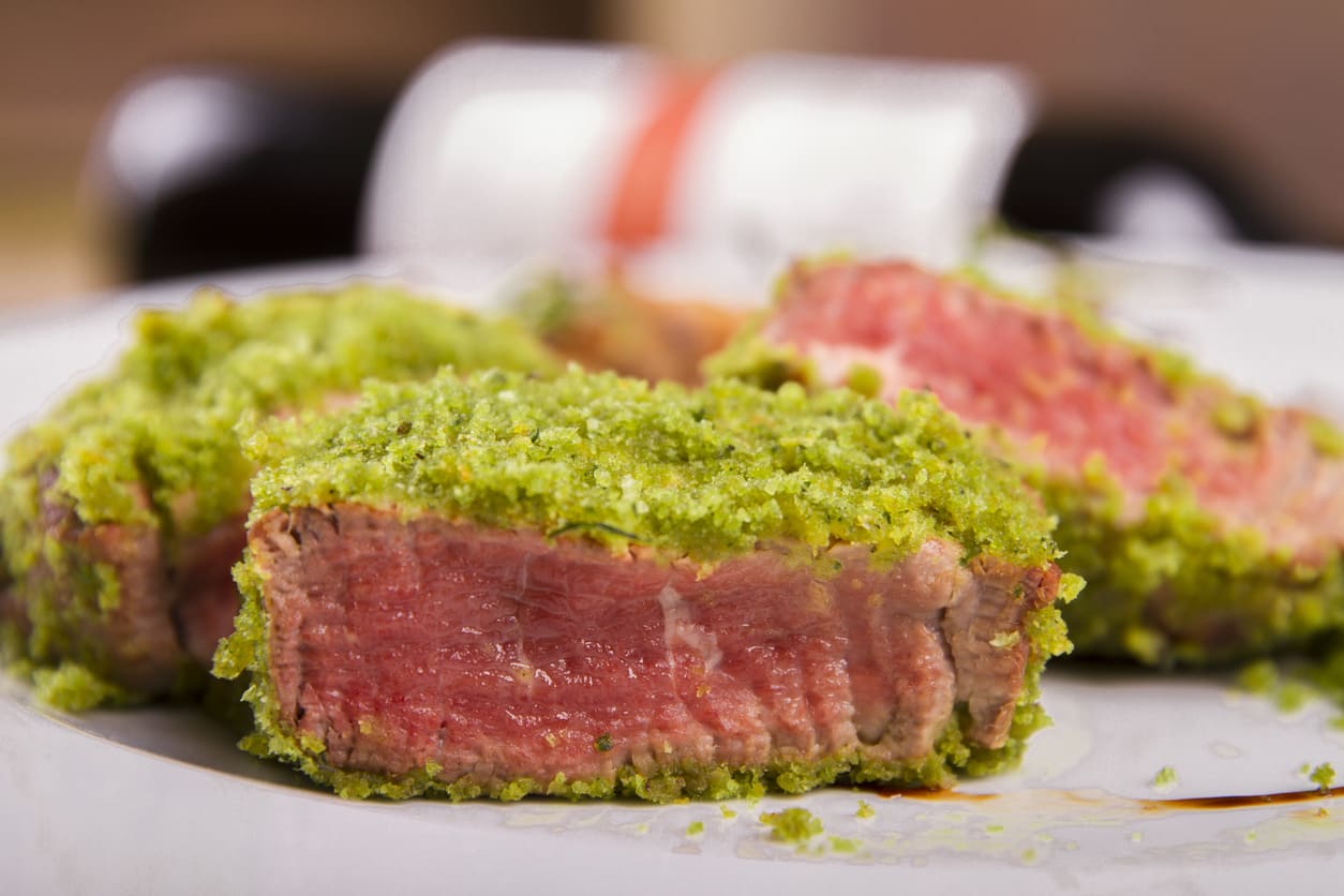 Filetto di maiale in crosta di pistacchi e mandorle.