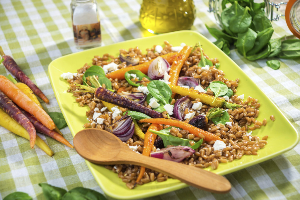 Infatti, il farro perlato cuoce in soli 20 minuti. Questa insalata è una ricetta gustosa, veloce, facile da preparare, qualcosa che si può mangiare sia calda o fredda. Le verdure saltate, leggermente dolci, insieme al sapore nocciolato del farro rendono questo piatto un pasto davvero irresistibile.