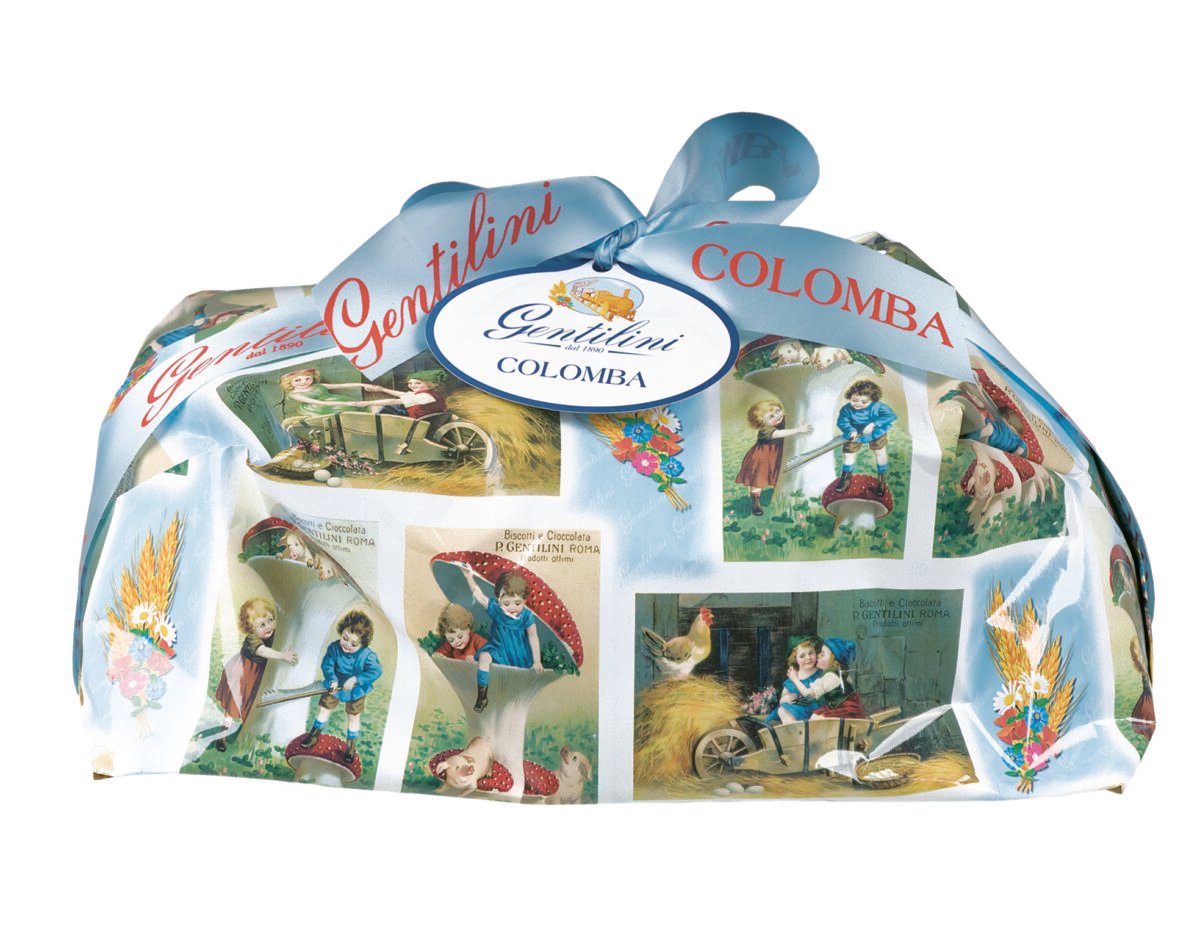 Incartata a mano, sulla confezione sono raffigurate vecchie cartoline Gentilini degli anni’30. LA COLOMBA SOVRANA da1.000 gr. è disponibile nell’e-shop https://shop.biscottigentilini.it/