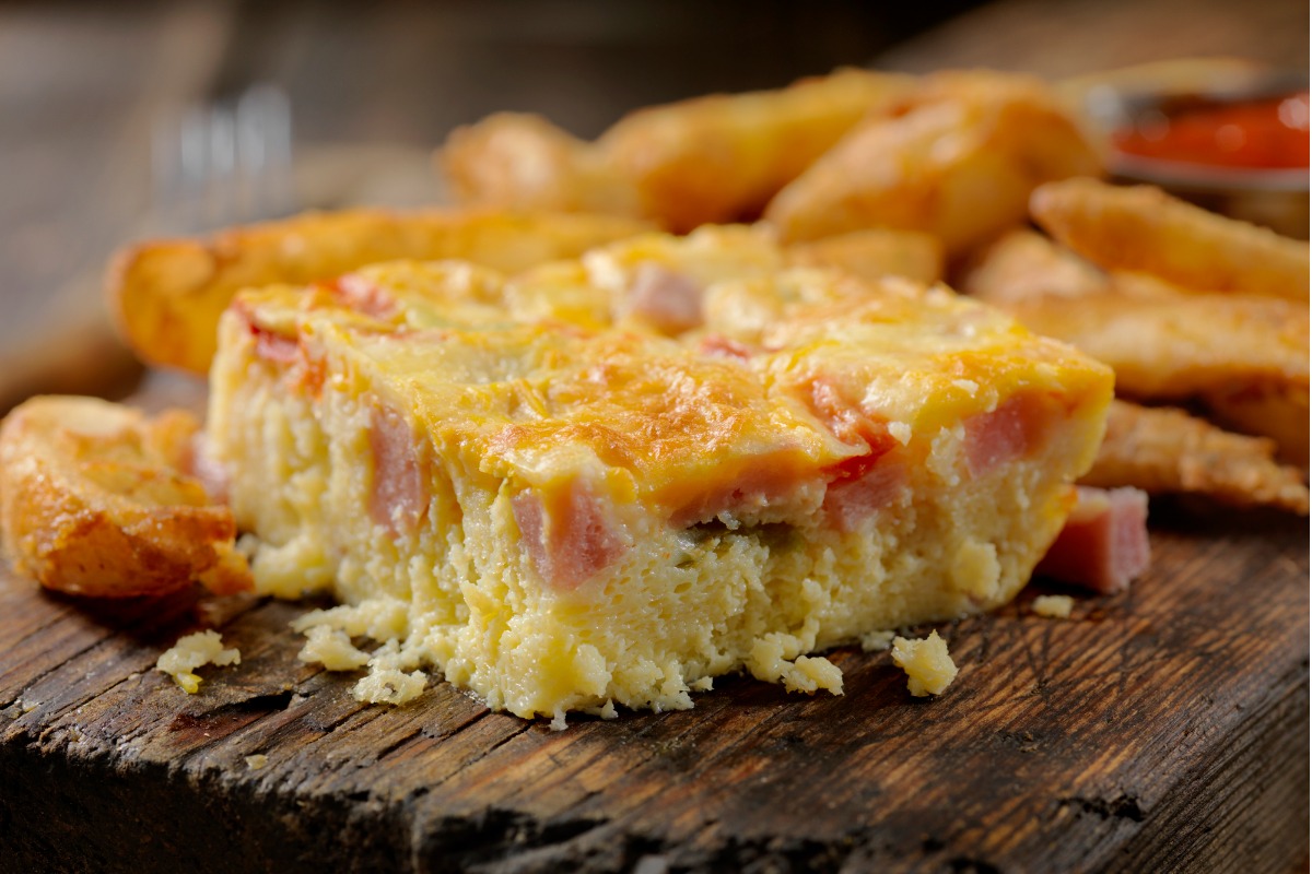 Lo smacafám è una sorta d’incrocio tra una torta salata e una frittata molto consistente, dal sapore vigoroso. Si mangia accompagnandola con verdura fresca: