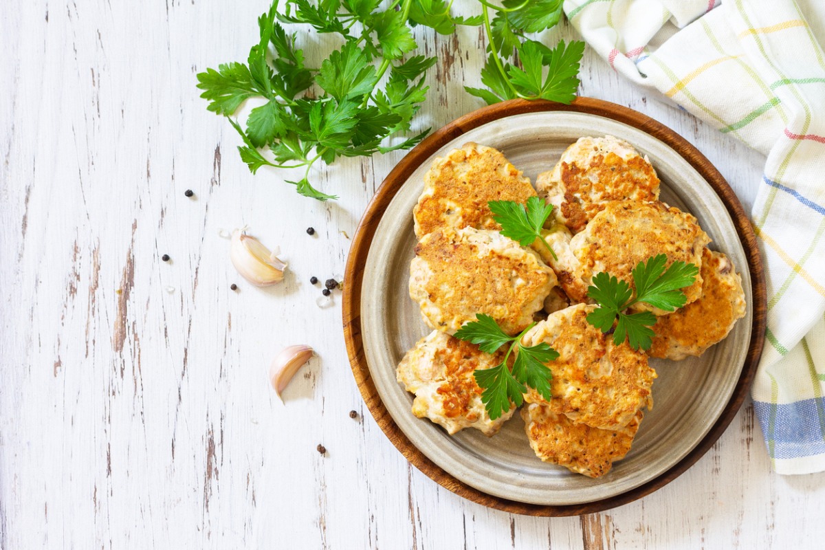 - Aggiungete al resto un po’ di prezzemolo, 2 pizzichi di sale, pepe e un goccio d’olio. Amalgamate e mettete il frigorifero mentre trattiamo il primo impasto.